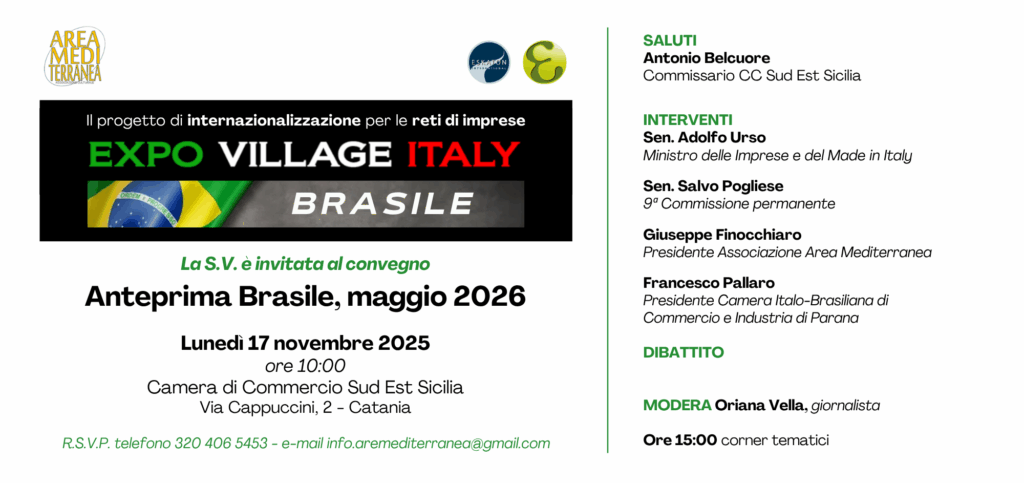 Vi preghiamo solo di registrare la presenza utilizzando il seguente link: https://www.eventbrite.it/e/biglietti-expo-village-italy-anteprima-brasile-2026-1967567396047?aff=oddtdtcreator